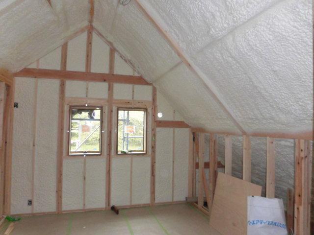 吹抜けもありリビングのエアコン1台で家の中全てが暖まる造りの建物になっています。